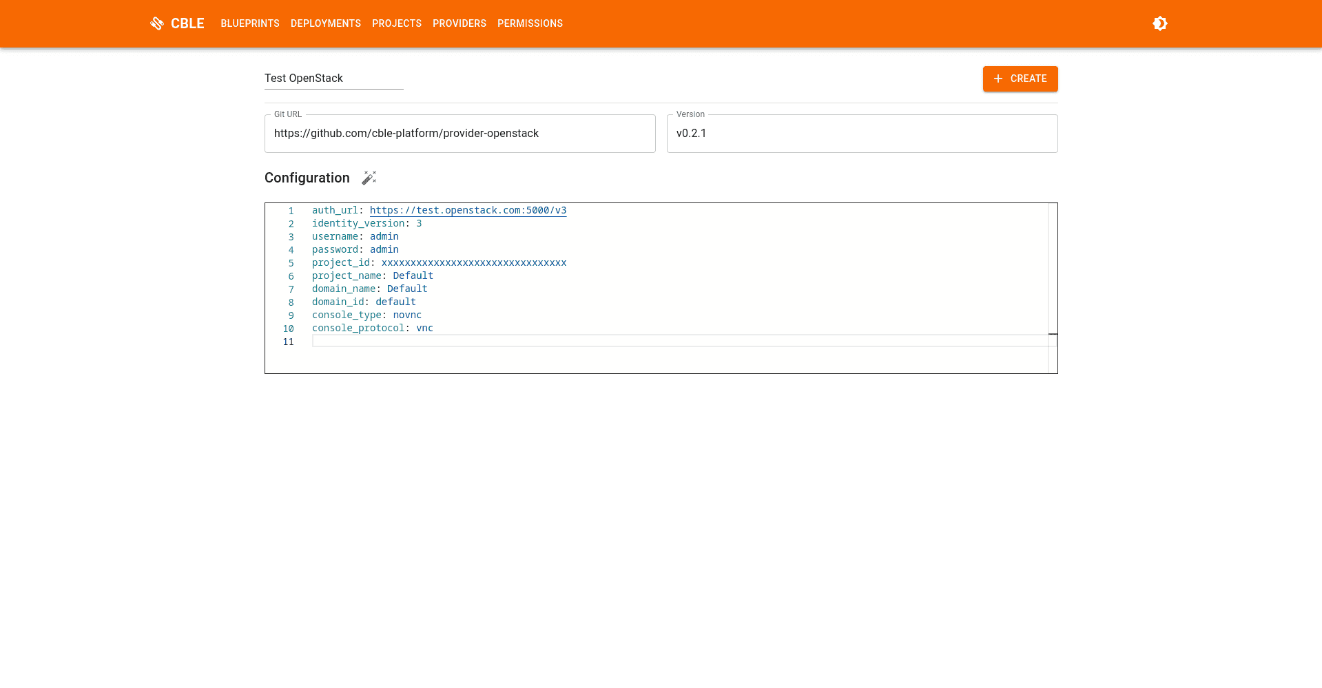 - Enter the Configuration for the provider (the provider repository will provide an example configuration)